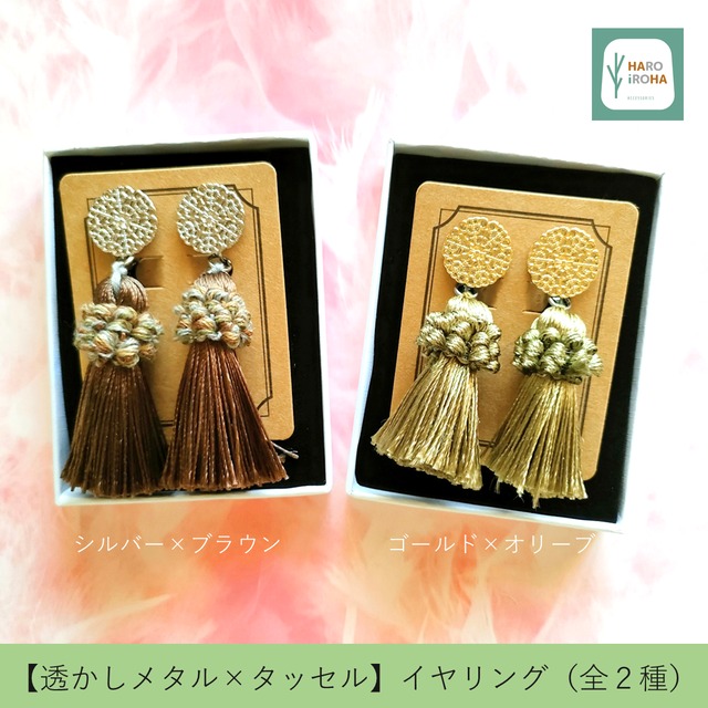 【透かしメタル×タッセル】イヤリング (全2種) 一足早く秋の訪れを感じさせるシックなカラーリングとデザインで、耳元を華やかに彩るイヤリング!透かしメタルの繊細なデザインに、揺れるタッセルが加わり、動きのある美しさを演出します。 全2種のデザインは、いずれも秋の色彩にぴったり。落ち着いたトーンの色合いがコーディネートに自然に溶け込みます。カジュアルスタイルはもちろん、オンオフ問わず幅広いシーンに活躍するアクセサリーです。 ※手作りのため、個体差がございます。一点一点の魅力をお楽しみください。 【素材】合金、綿(タッセル)、接着剤 イヤリングのサイズ: 「シルバー×ブラウン」約7cm 「ゴールド×オリーブ」約6.5cm(タッセル部分含む) イヤリング金具の色はシルバーです。 ※タッセルは強く引っ張ると糸がほつれるため、お取り扱いに十分ご注意ください。