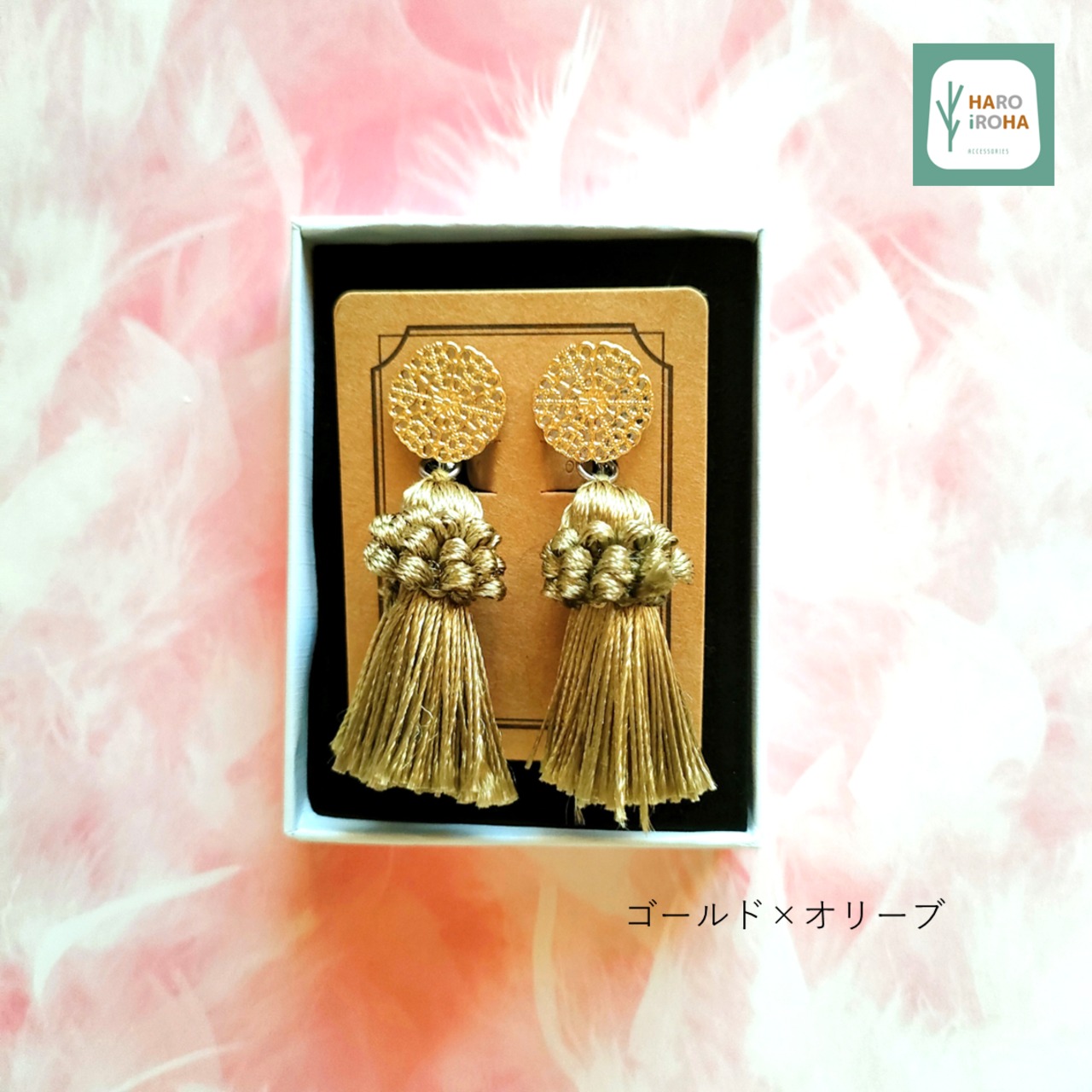 「ゴールド×オリーブ」約6.5cm(タッセル部分含む)