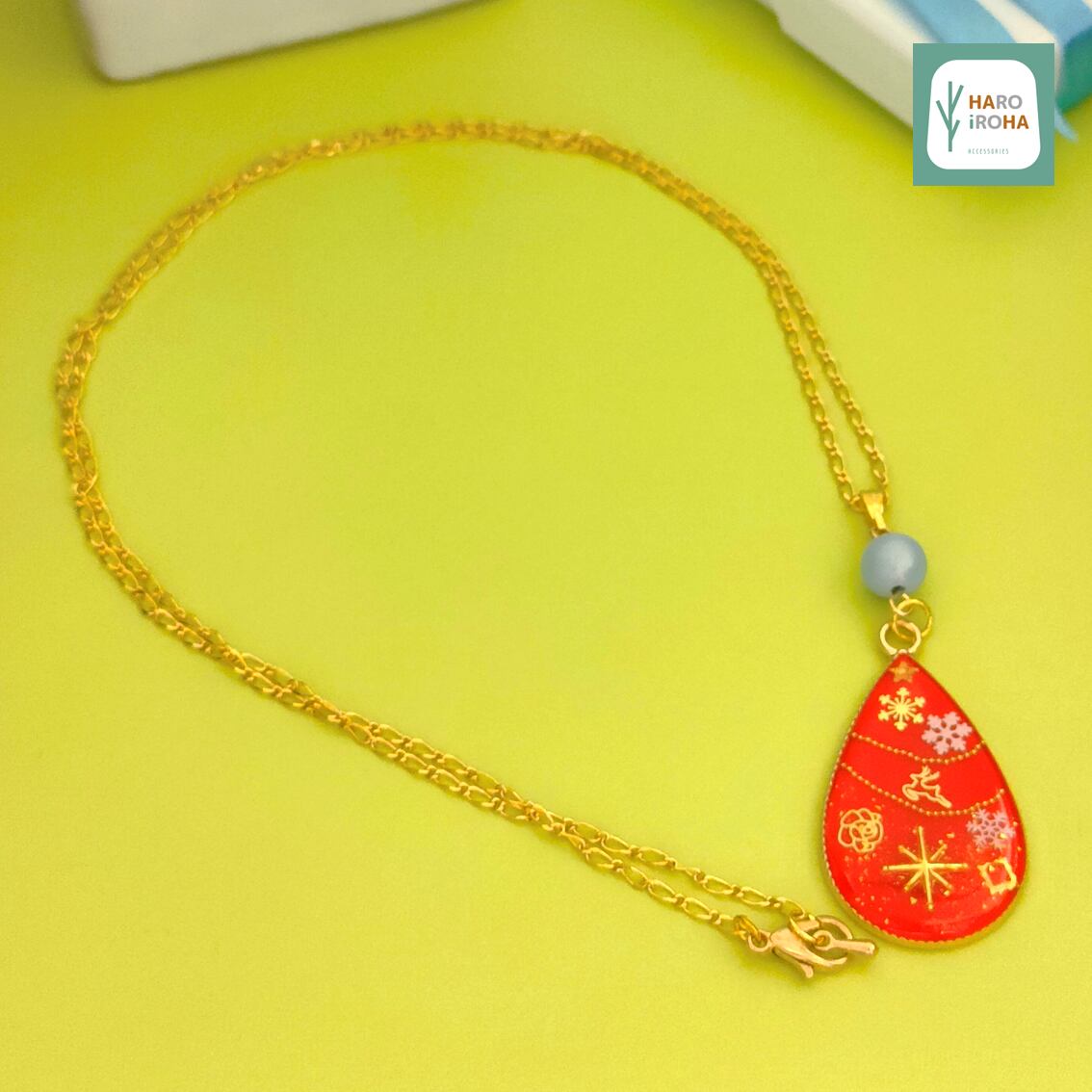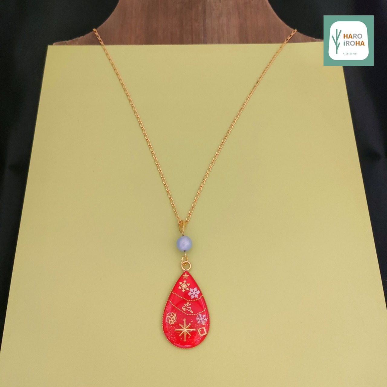 ピュアレッドをベースカラーにしたシンプルな「しずく」(TEAR DROP)型のペンダントです。