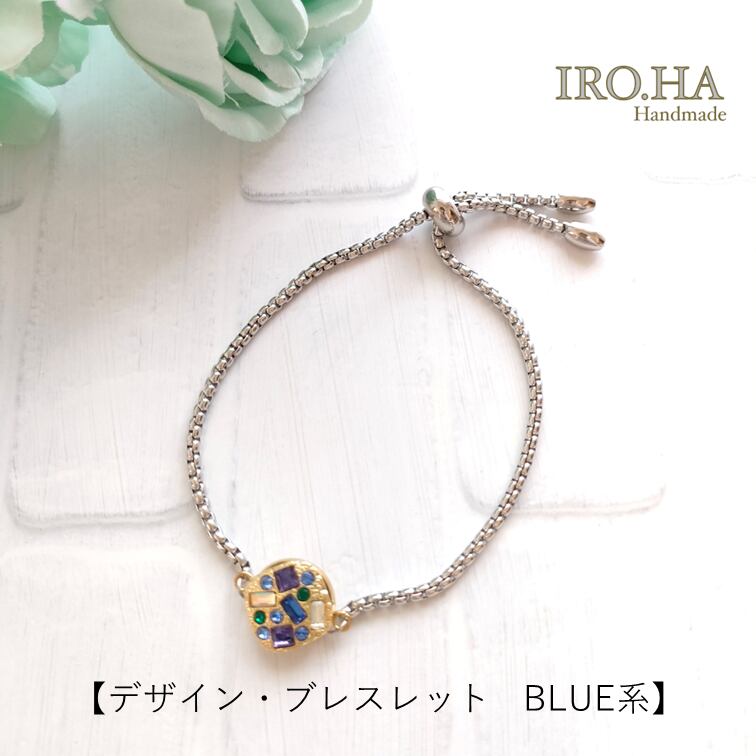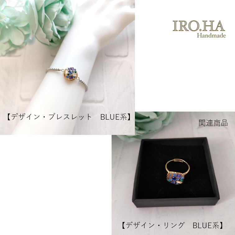 IRO.HAの関連商品、デザイン・ブレスレット(BLUE系)と合わせてお使いいただくのもおすすめです。石座の部分に同じデザインを採用しています。